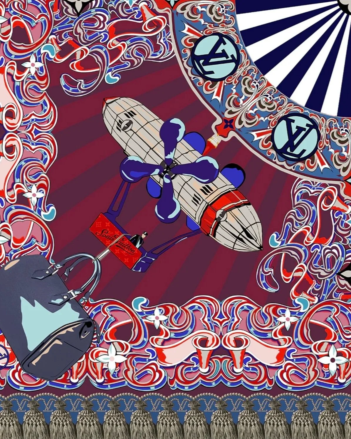 Louis Vuitton: 'Merry Go Round the World' Printed Silk Scarf Design